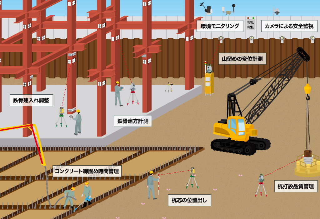 夏場の熱中症予防、強風や大雨による作業中断の判断・翌日の作業の工程管理など、現場の安全に役立てられます。