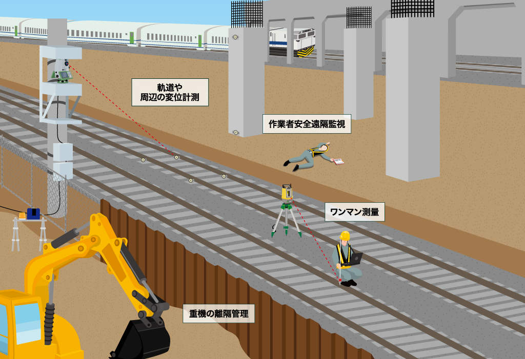 衛星が入らない現場ではトータルステーションによる代用も可能です。