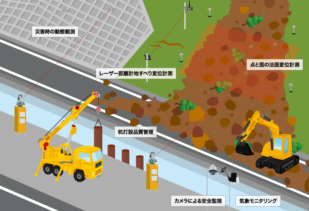 路面や法面の現況、構造物の出来形を『点』と『面』で自動計測